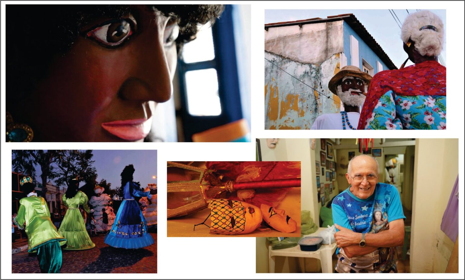 Bonecos escuros. Não fui eu quem denominou. Quem denominou foi o próprio público que achava ser o bloco um maracatu. E eu tenho trabalhado para que assim se pareça. A característica dele é ser um bloco de cultura negra.