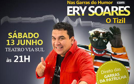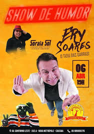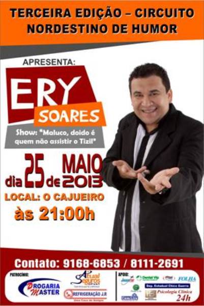 Ery Soares é hoje um dos principais nomes do humor do Ceará, logo cedo descobriu sua vocação para o humor e resolveu seguir sua intuição, acreditando que um dia teria seu trabalho reconhecido e não deu outra. Como todo e qualquer brasileiro, ERY SOARES foi à luta a procura da realização de um sonho e a concretização de uma carreira profissional promissora. Começou fazendo participações em rádio nos anos 90, paralelo a isso começou a fazer show nas principais casas do gênero emFortaleza, mais o primeiro trabalho como profissional foi na Rádio Cidade 95,5 Fortaleza, onde teve oportunidade de trabalhar ao lado de nomes consagrados do humor cearense, como: Skolástica, Rossicléia, Célio Silveira (João Rufino) e Wellington Muniz (O Ceará) e outros grandes nomes.Depois vieram convites de outras emissoras entre elas: Jangadeiro FM, Rádio AM do Povo CBN, onde trabalhou como humorista, produtor e redator.