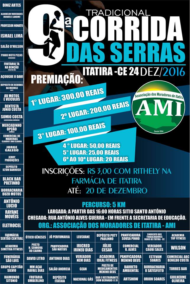Ativa desde 2004, a Associação dos Jovens de Itatira foi criada no intuito de dinamizar a vida dos jovens da cidade através de ações e atividade que integrassem o esporte, a cultura e a cidadania. Nesse quase 15 anos de atuação de forma ativa, a associação criou uma teia de parcerias que ajudam a melhorar o acesso e contribui para o fortalecimento da cultura popular e as tradições locais. Ações de solidariedade e cidadania também marca as funções sociais desse grupo. O bem comum e a criação de novas oportunidade sociais, políticas e culturais são as molas centrais dessa engrenagem sociais fortalecidas pelos jovens da cidade de Itatira, pobre município do sertão central.Galeria