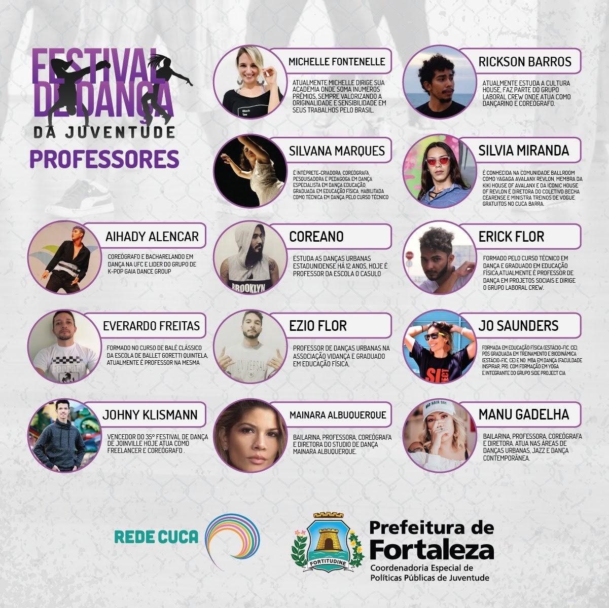 Iniciou suas práticas nas artes em 2009 nas danças eletrônicas. Em 2010, começou a estudar e pesquisar as danças vernaculares afrodiasporicas.Foi aluno da 7ª turma do curso superior em licenciatura em dança na Universidade Federal do Ceará - UFC, onde pesquisou sobre doscencia no House Dance e na composição coreográfica.
