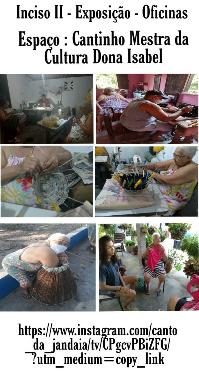 Isabel Francisca de Oliveira, Mestra da cultura do município de Caucaia reconhecida pelo povo, pela comunidade, por diversos movimentos culturais e comunidades de várias localidades de Caucaia e pelo poder público municipal, artesã, guardiã da memória local, contadora de histórias e agricultora familiar. Articuladora fundadora do Movimento Canto da Jandaia Jandaiguaba, um espaço cultural a qual se manifestam de diversas culturas há anos, entre o Carimbó da Vovó, o Boi Bonito, a Paixão de Cristo, as vias sacras, a quadrilha Improvisada Arraiá da Fogueirinha, o Teatro, a produção de artesanato e o coletivo de mulheres artesãs, a Dança do Toré e o projeto Capoeira, O jogo da Memória em Movimento) e outras.Em 1987, em um sábado à tarde, estavam reunidos Dona Isabel (atualmente Mestra da Cultura do nosso Município reconhecida pela Sec. de Cultura e Turismo de Caucaia, através da Lei Aldir Blanc), seu Batista, Dona Lurdinha entre outras pessoas que atuavam na articulação do fluxo dos saberes da comunidade junto às famílias da aldeia, planejando os terço de São José entre outros eventos de modo a manter vivas e permanentes as práticas e a memória da cultura local, uma maneira de incentivar o povo e não deixar esmorecer a cultura, assim surgiu aquela ideia de fazer a encenação das via sacras nas estrada principais da aldeia, a ideia foi aceita e envolvida por todas e todos, e então iniciou-se articulações de estudos, ensaios, oficinas entre outras atividades e criação do grupo PAIXÃO DE CRISTO CANTO DA JANDAIA - JANDAIGUABA para a realizar a encenação da Paixão de Cristo na Aldeia da Jandaiguaba daquele mesmo ano, 1987, a partir de então todos os anos são realizadas a encenação da Paixão de Cristo. À convite o grupo já se apresentou em outras aldeias da região.