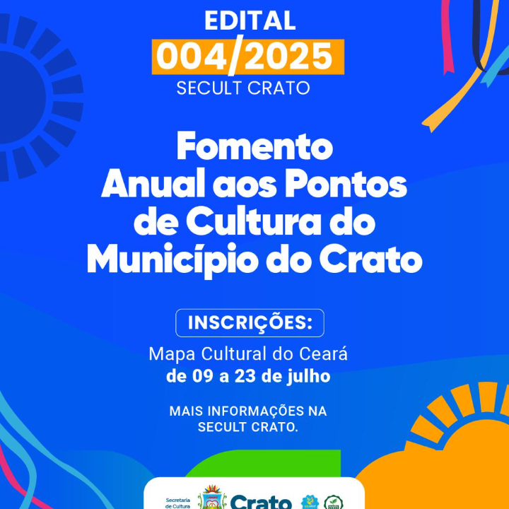 EDITAL DE SELEÇÃO PÚBLICA 004/2025- SECULT FOMENTO ANUAL AOS PONTOS DE CULTURA DO MUNICÍPIO DO CRATO